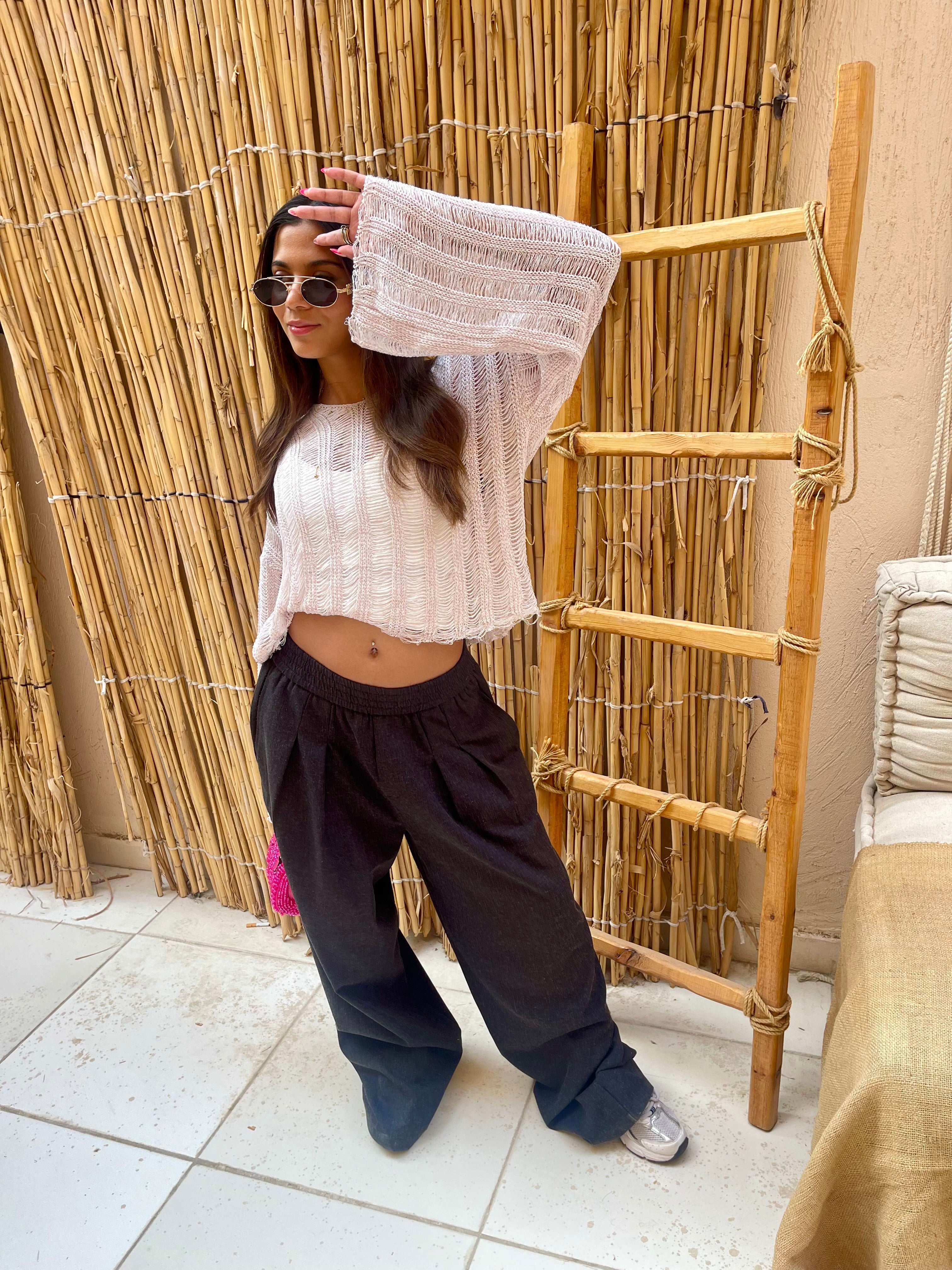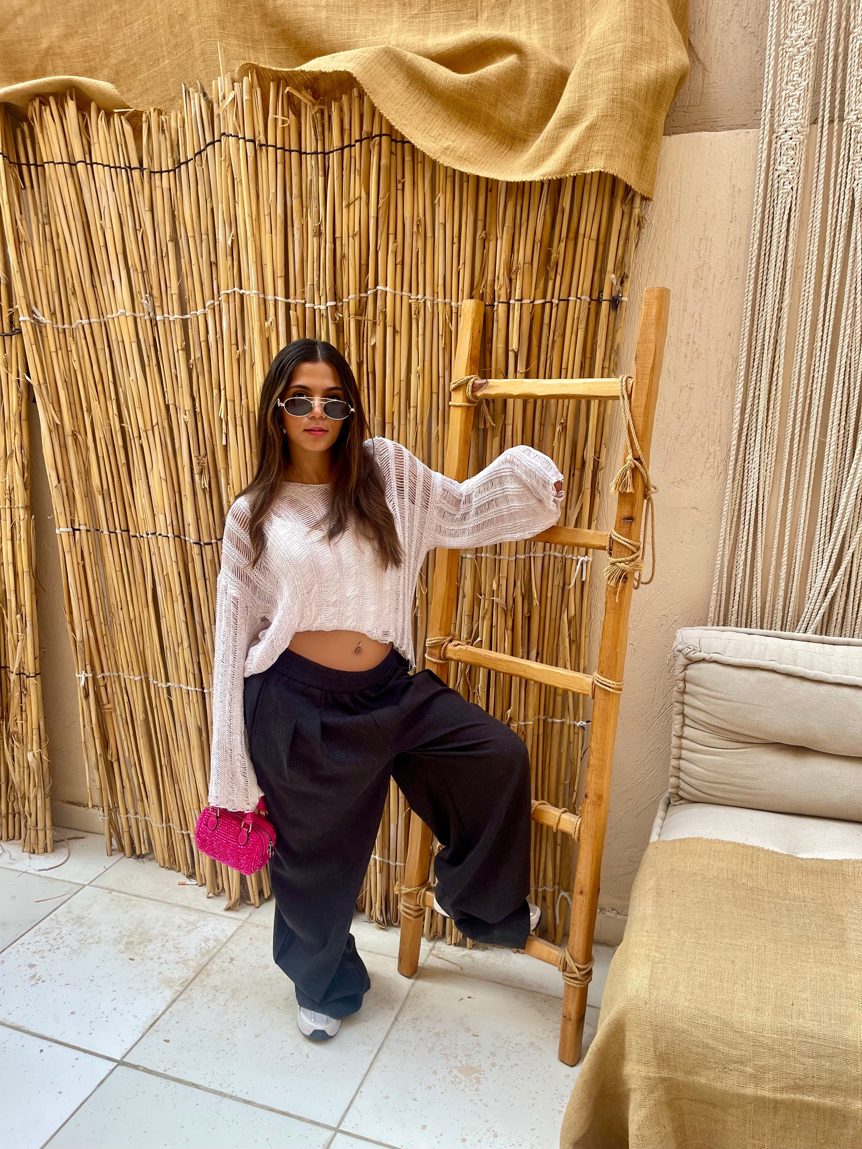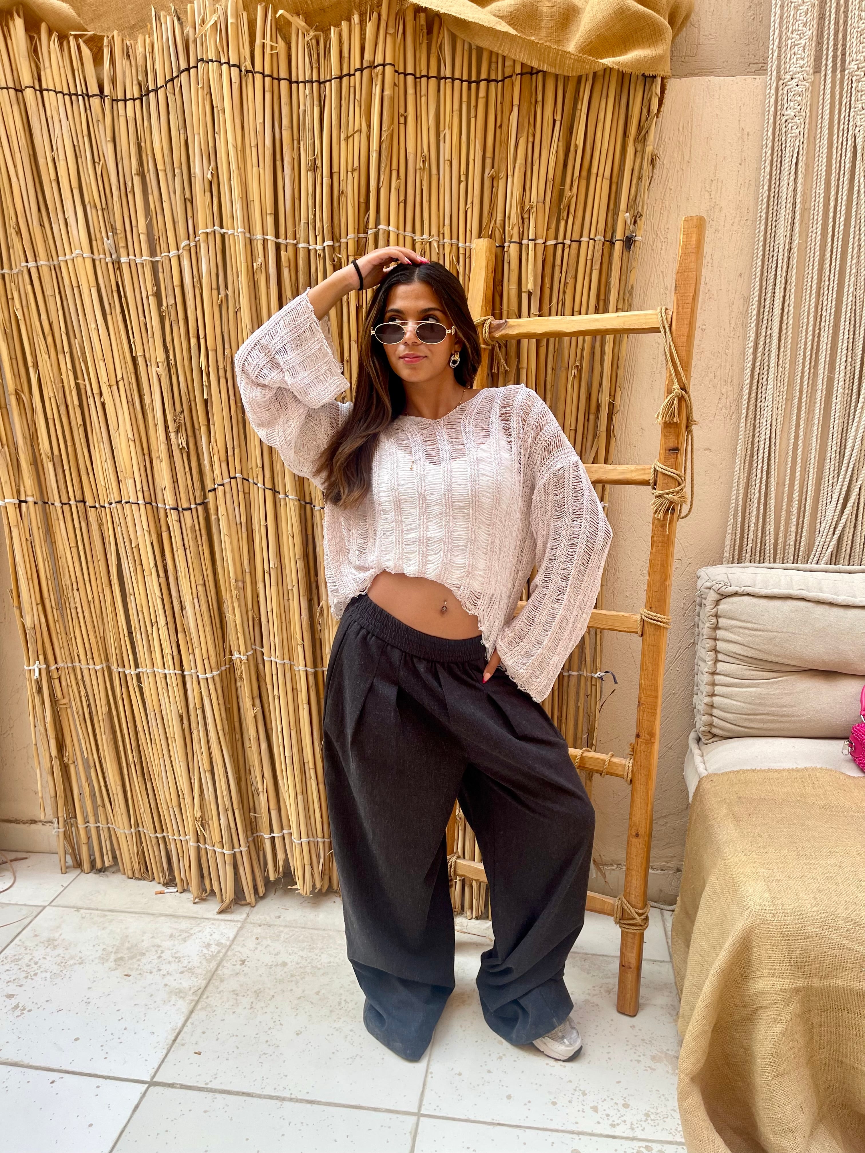 Lucca top is an oversized shimmery knitted top that comes in two colors gold and pink